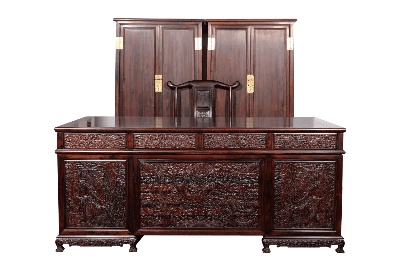 刀狀黑黃檀大小頭柜+精雕辦公桌